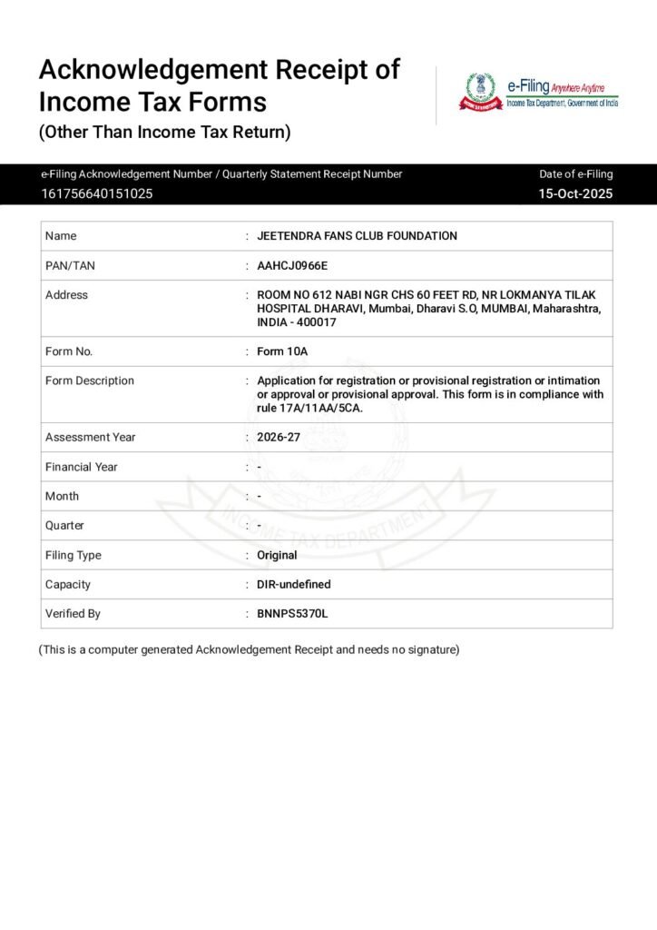Jeetendra fansclub foundation